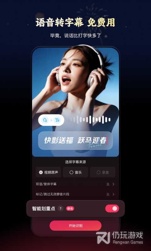 3.在选择字幕识别来源时,选择【视频原声】,如果视频原声无法识别,则使用其他来源,点击【开始识别】;