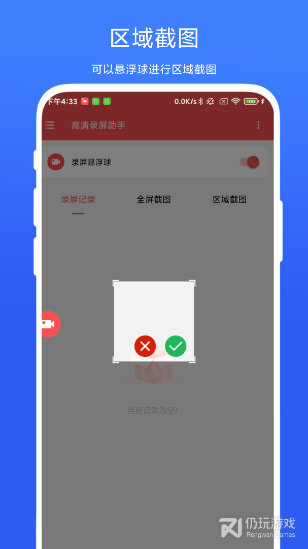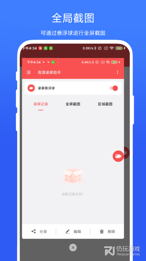 高清录屏助手可以快速录制屏幕的app。另外,通过点击悬浮球,也可以实现全屏截图和区域截图,软件内置录制悬浮球,录制屏幕时无需打开app界面,只需点击一下悬浮球即可开始录屏。截图完成后,可以对图片进行标记处理。