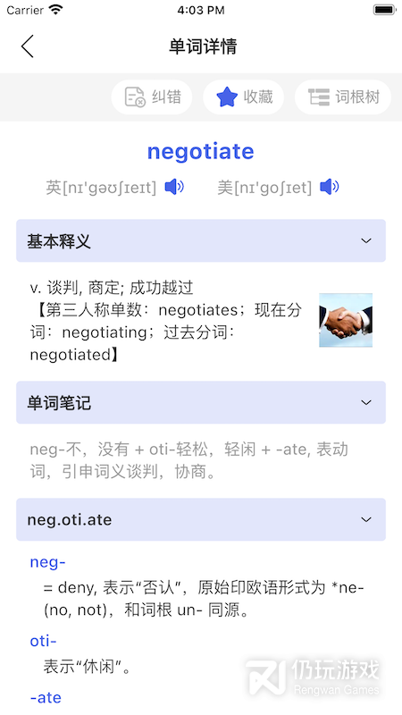 词根词缀字典是一款专门查询单词记忆法的字典!词根、词缀、词源,口诀、谐音、对照、图形等帮你又快又不遗忘的背单词。