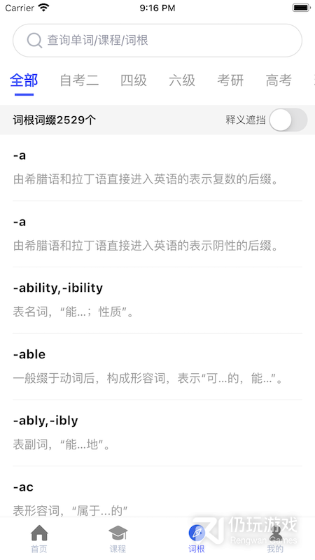 3、词根词缀词典是款非常好用的词典应用,软件为你提供专门的记忆法,帮你快速的记单词,提供多种方法使用,拥有海量的词汇选择,帮你快速提高学习效率