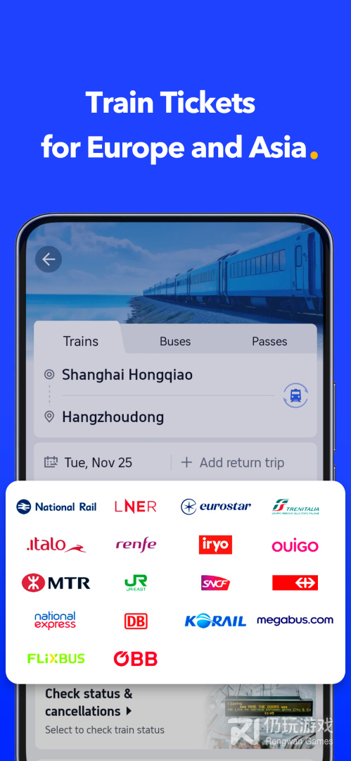 ● 轻松预订中国国内、韩国、英 国火车票