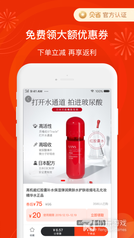2、贝省最新版为用户提供了购物返利的功能,99%的商品都可以获得返利,帮你购物更加省钱