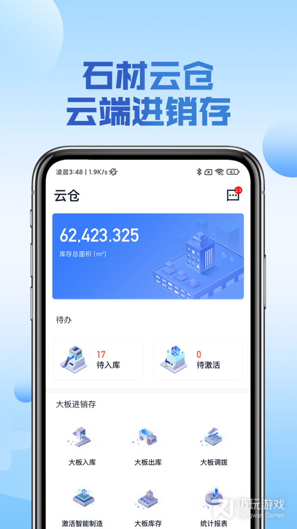 1、石材云仓,专为石材企业打造的进销存管理工具。利用大数据、云技术和先进管理方式,提供出入库管理、动态库存盘点等功能,打通进、销、存各个环节