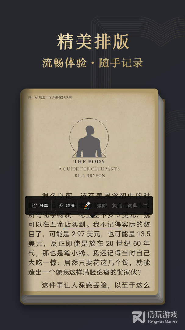 1、精选字体混排,支持阅读批注、记录笔记;字体、间距等细节都可以用户自定义;支持护眼模式,减轻眼睛负担