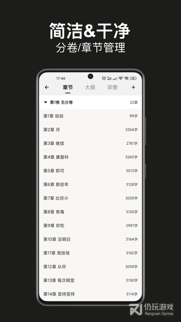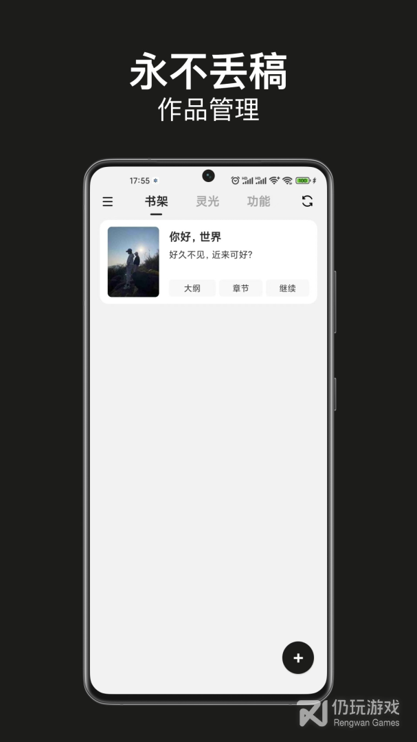 1、旨在提供创作灵感和工具支持。用户可以随时使用该应用记录灵感、编写大纲和完成小说创作。同时,闭关写作还提供章节管理、云存稿等实用功能,帮助用户更高效地完成作品