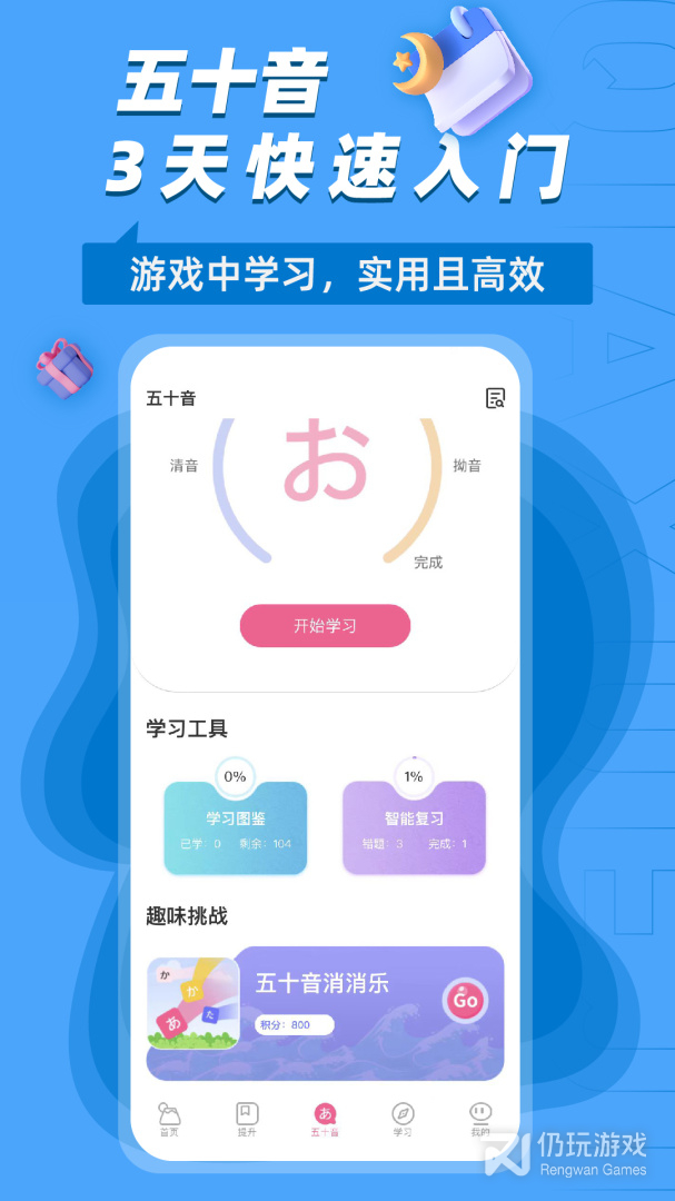 - 创新五十音游戏,游戏与学习结合,日语学习更轻松。