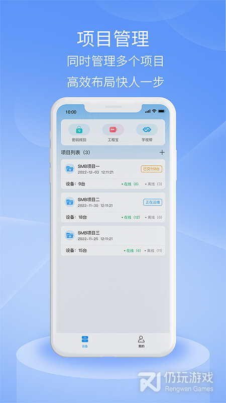 在移动终端上实现项目管理、安装调试、远程配置、运维管理、视频查看、云台控制等功能。