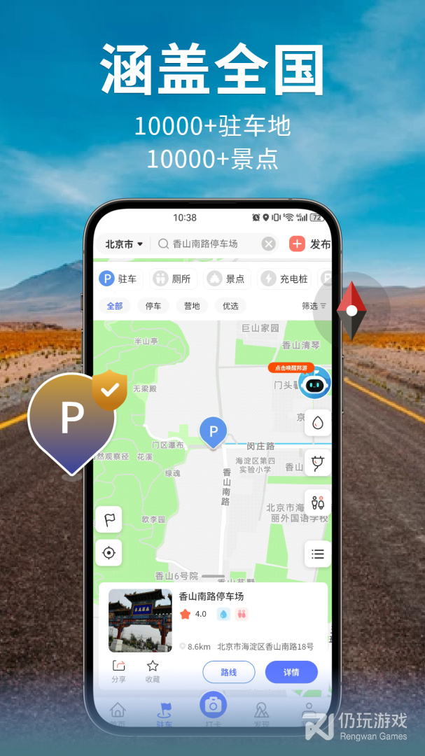 1、涵盖10000+驻车地|8000+景点|3000+自驾游路线;
