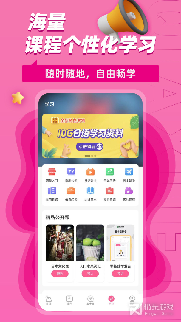1、恰学日语最新版为用户朋友们提供了一个超棒的日语学习平台,软件上有着海量的课程等你来观看,并且还会为不同的用户来制定不同的学习计划,不断地学习更多全新知识,更有专业的老师来为用户朋友们矫正语法,回答各式各样的问题,快速提升口语语感!喜欢就来下载恰学日语最新版吧