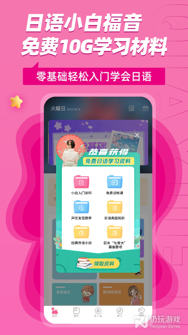 1、免费领取零基础学习日语教材。