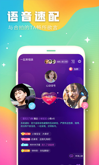 1、软件功能非常强大,这里汇集了非常多的单身男女,颜值都非常高,你可以在这里随时进入语音房间畅聊,操作非常便捷,帮助你从此告别孤单
