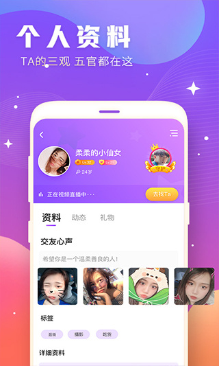 3、能够通过面对面视频聊天,满足喜欢帅哥美女的你,让你很快找到喜欢的对象