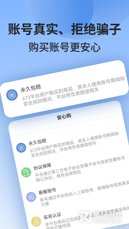 673严选最新版——国内知名的综合性手机游戏交易平台,软件界面清晰简单,每天定时推送首页信息。玩家可以在这里快速付款,交易双方透明且有保障。还有来自在线客服的问题和答案。
