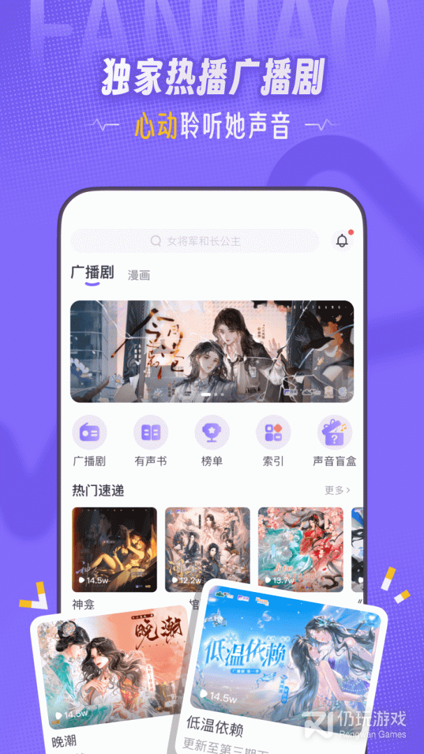 2、二次元爱好者的汇聚交流平台;饭角最新版提供大量的广播剧,有声书资源,超人气的优质内容在线收听,还可以与共同爱好者讨论交流