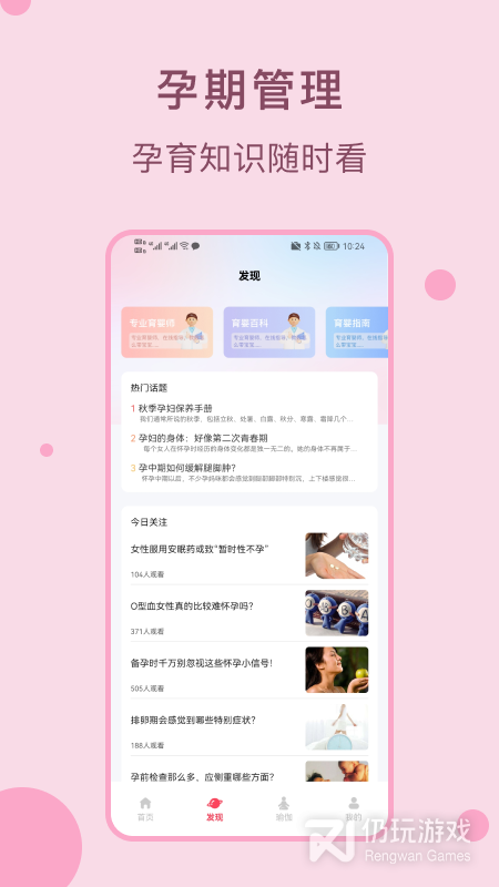 4、孕育知识,孕期全面指导和发育指标,婴幼儿成长指标、养育护理要点等