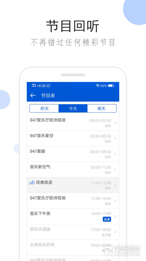 10、支持广播回听功能,包括昨天,今天和明天的节目单,让你不错过任何精彩节目。
