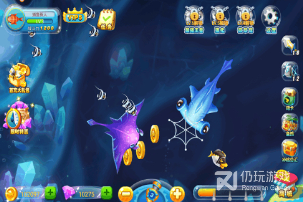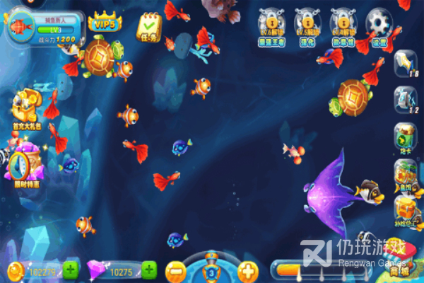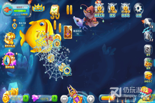 1、大家可以在游戏中进行捕鱼大作战,开启你的捕鱼新玩法,在游戏的世界中进行撒网,各种鱼类都可以转化成金币哟,金币越多,你的装备就越好