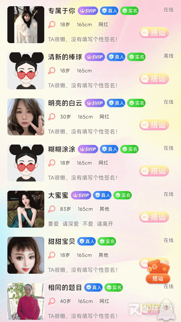 1、智能匹配:通过智能算法,为用户提供个性化的交友推荐,提高成功匹配的几率