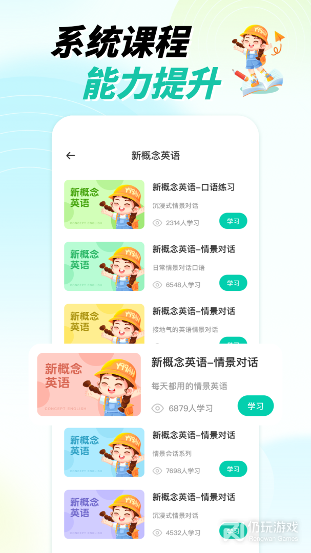 3、学习模式听外教的纯正录音,模仿加练习,提交的对话我们将用*专业的打分系统来评分。*的录音还将成为别人的练习对象,让你的声音像幽灵般一直游荡在app里