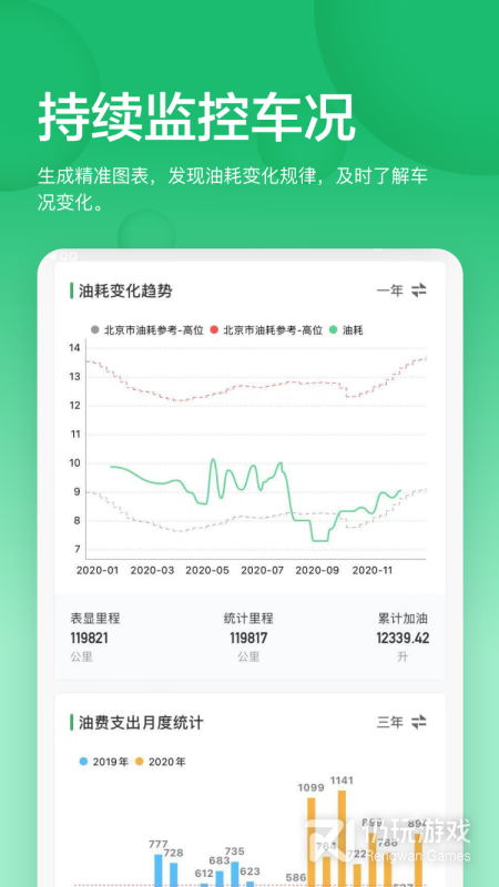 生成精准图表,发现油耗变化规律,及时了解车况变化。