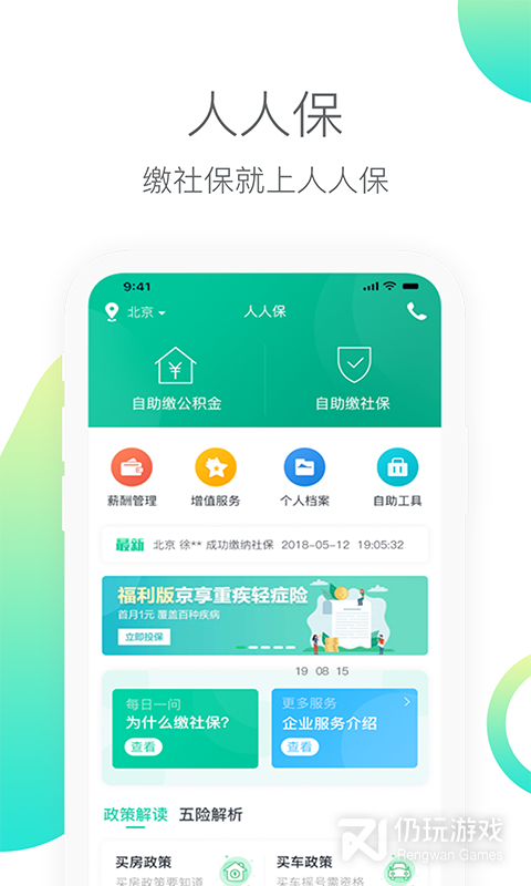 2、主要业务包括社保代理缴纳、医疗报销申领、社保转移等。使用该软件,用户可在线操作业务,便捷、安全。而且人人保APP业务覆盖全国300个城市,并提供全程1对1服务,让你轻松缴社保
