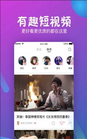 3、汇聚了全网各类视频,搞笑、影视、生活、情感、美女、新闻等多个领域,你想看的这里都有,平台根据用户平时刷视频习惯系统智能推荐用户喜爱的视频;软件占用空间小,轻量级,省流更省心