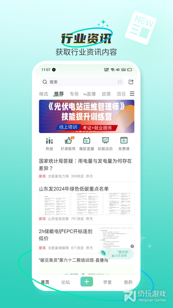 2、北极星学社是电力行业资讯软件,它集结了丰富的业内资讯、搭建了专属社区圈子,让你轻松结识同行精英;它还精心构建了专业课程体系,无论是线上研习还是线下高端研讨会,全方位助力用户深化知识与技能。通过软件,你将能够实时把握行业脉搏,拓展人脉网络,并得到全面系统的专业教育