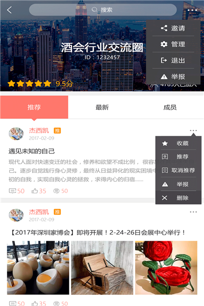 3、查看圈子信息,可以收藏推荐圈子动态。