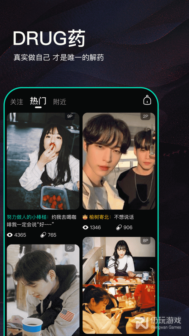 Drug药是一款专为年轻人打造的社交平台,这里汇聚了来自全国各地的优质青年,用户可以在这里更自由的表达自己,多元化的社区,你可以通过视频、图片或是文字来展现自己,发现更多有趣的灵魂,匹配和你相对的那个人,让每一个人都不再孤独,做真实的自己!快来下载体验吧!
