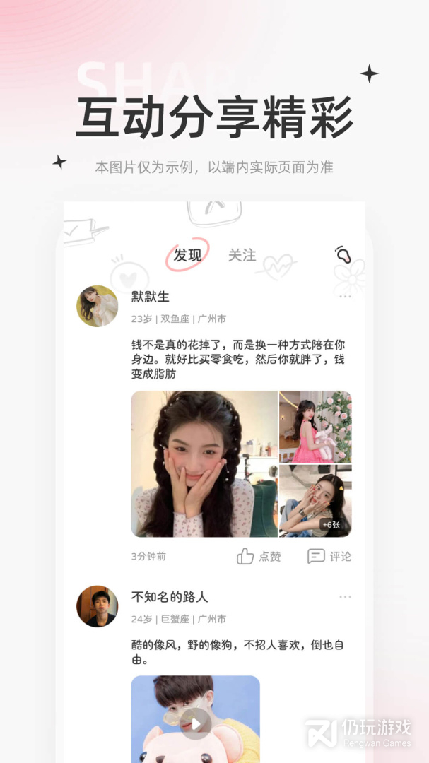 1、带有同城交友聊天与社交动态分享等多种功能的真人交友软件。用户们通过简单的步骤完成注册后即可加入到这个线上社区中,在这里能够自在地和其他用户进行聊天交流,有机会结交许多新朋友