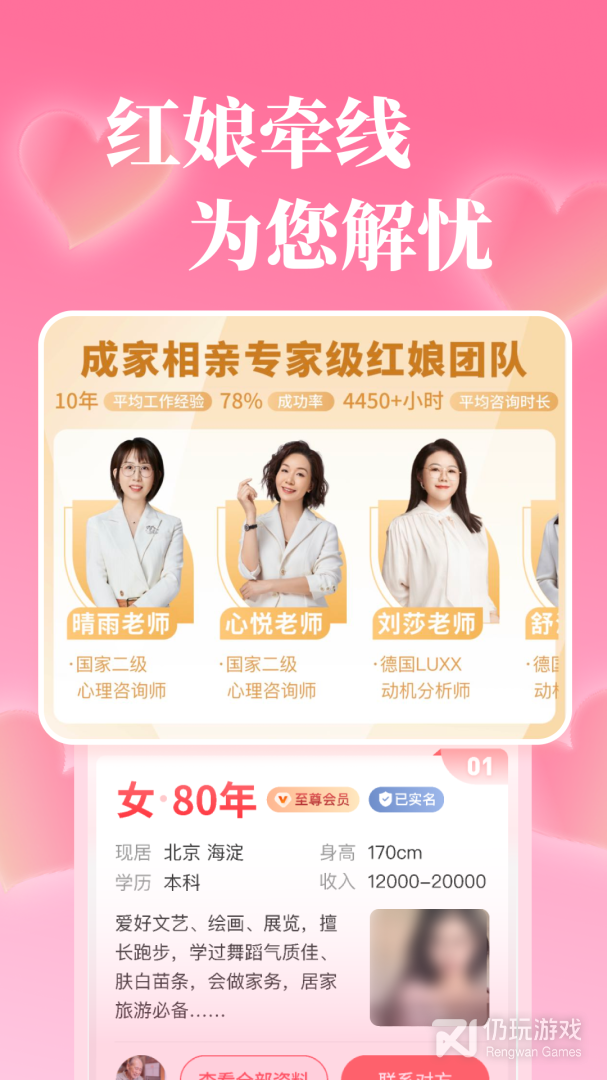 「成家相亲」是我国”婚姻家庭工作委员会”认证的专业相亲机构 ,权威靠谱。相亲资料全部经过真人审核,真实可靠。是全国20万家长都在用的相亲平台!