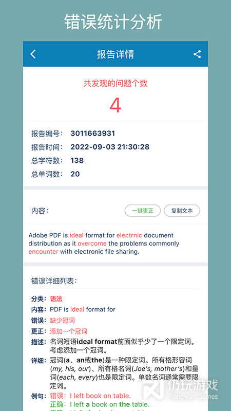 4、智能检测,专业的美英英语水准,检测出你的文本里的每个问题并及时纠正