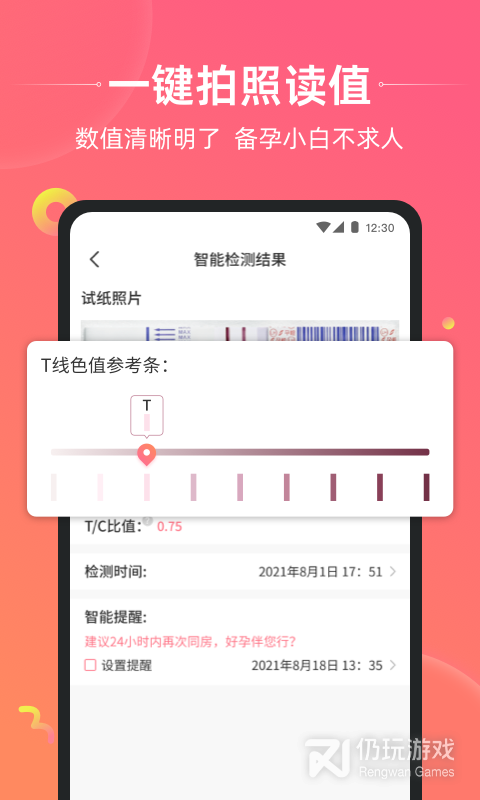 2、孕橙小助手引导排卵试纸检测,使用过程清晰明了,并可添加试纸检测提醒。通过AI数据库模型,智能判断基础体温数据与排卵试纸数据是否吻合,来确定用户是否正在发生排卵,时间可以精确到4小时之内