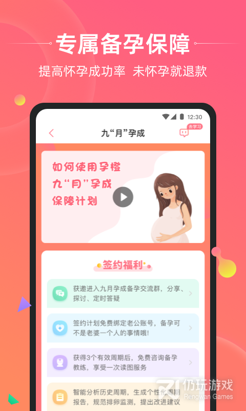 2、能够轻松计算出用户的排卵日和生理周期,随时掌握自己的身体情况并进行自我的健康管理,让备孕更加科学。软件还准备了丰富的知识课堂,用户可以了解到和备孕、女性周期有关的各种知识,提高自然怀孕的成功率