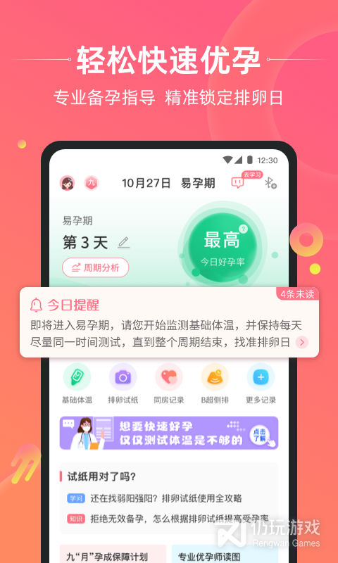 4、忘了测体温?又错过了排卵日?又忘了安排同房?即时提醒全帮你搞定