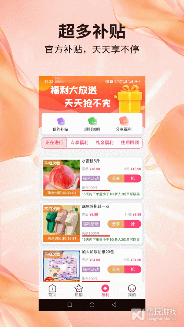 1、无论是首次注册,还是每周补货,都能享受到多种多样超实惠的优惠,让用户尽可能地省下开销
