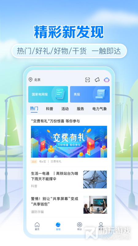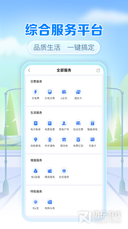 3、整合加载国网商城精选、国网商旅、95598电力服务、P2P、金融超市、健康医疗、电力阅读、智慧生活、分布式能源等产品服务