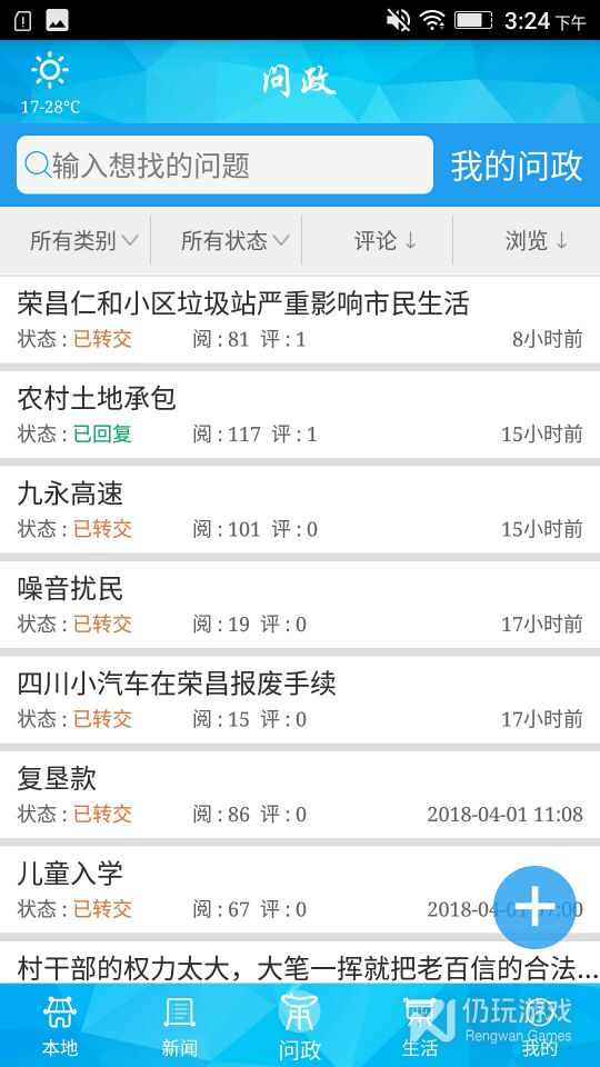 线上问政,市民可以在此发布自己的疑问以此得到政府的回答;