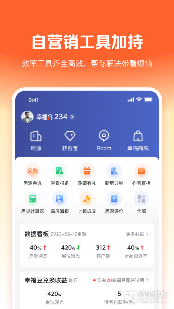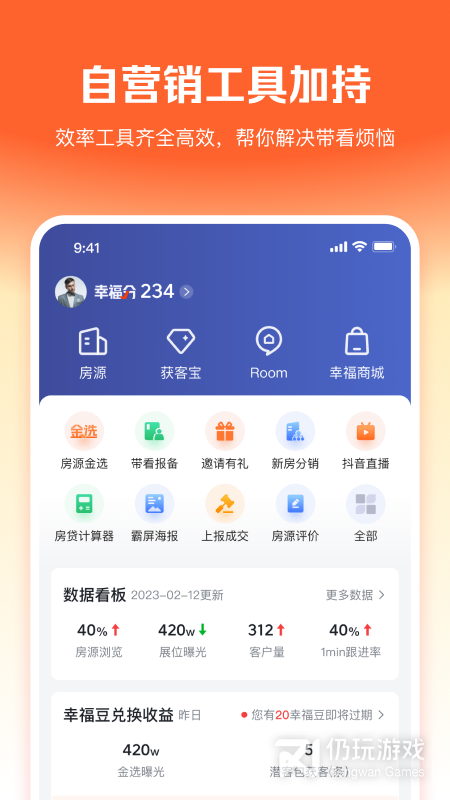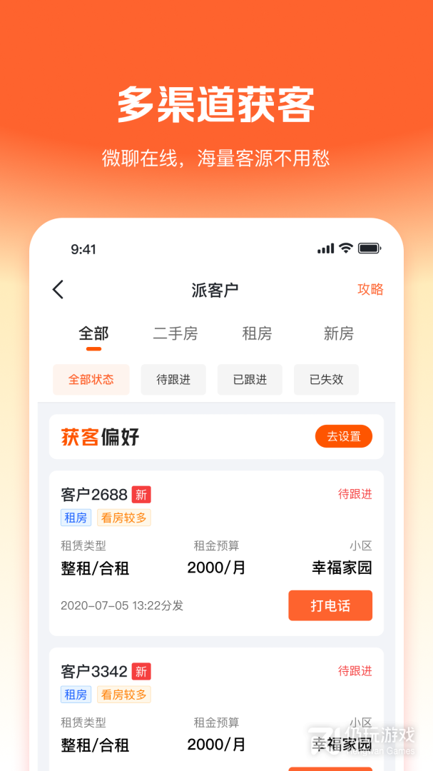 2、幸福客是要看专为项目专员打造的办公app,与幸福家APP配合使用,支持专员管理、售楼员跟进等功能,提高广大销售人员的办事效率