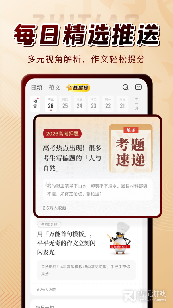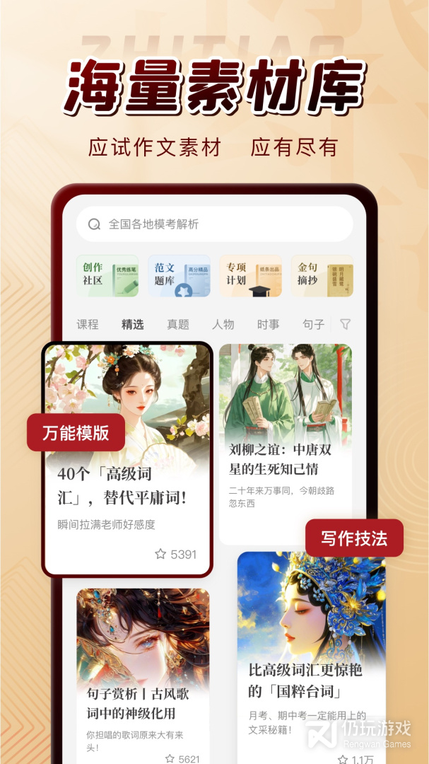 海量名人名言/时事素材/人物素材/高考范文/中考范文/作文模板/写作技法……你一直在找的作文素材/范文/模板,通通都在这里。紧跟考场热点,实时更新,每日个性化推送。