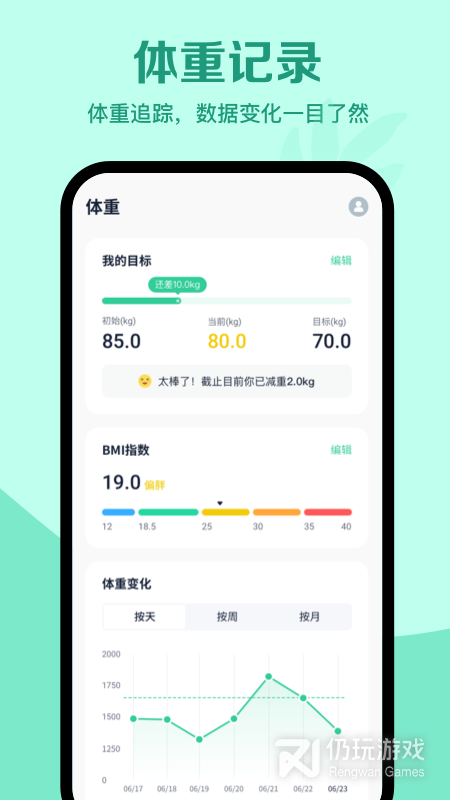 还可以完整的记录用户的体重变化的情况,各种数据的显示也是非常直观的。