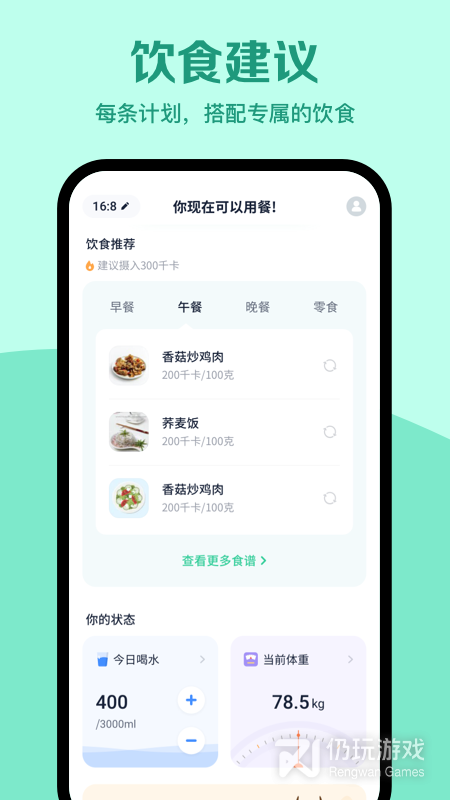 2、里面会给根据你的体重数据来为你推荐健康饮食建议,让你在不伤害自己身体的同时,还能减肥,且效果很好。每天都要记得在线打卡,按照计划完成,坚持下去就会有好的收获