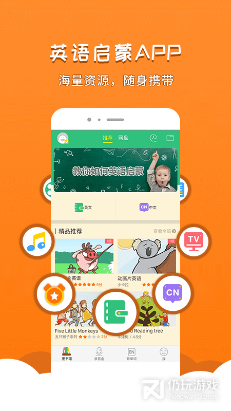 1、儿童英语启蒙学习软件,按照Krashen的“情感过滤假设”, 在心理放松的条件下去学习英语,才会有最好的效果。所以“千读最新版资源,包括各种影视、分级读物、绘本故事、章节书、小说等等