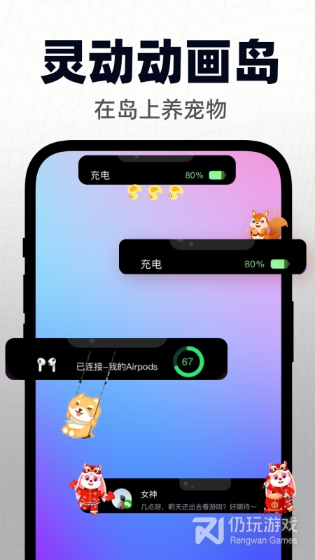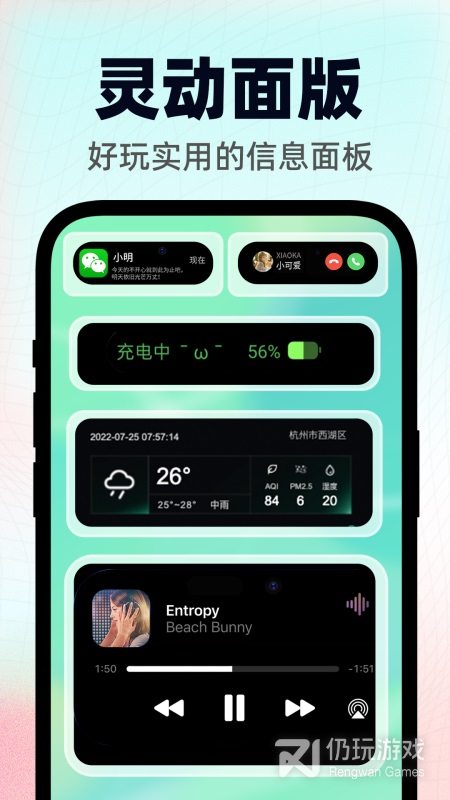 2、灵动小组件最新版,专为安卓手机设计的灵动岛设置工具。软件适配各个品牌和型号的安卓手机,让桌面拥有苹果手机同款灵动岛。用户可以自定义灵动组件的原点大小、原点宽度、距离顶部、距离两侧、屏幕圆角等参数,让组件与桌面融为一体