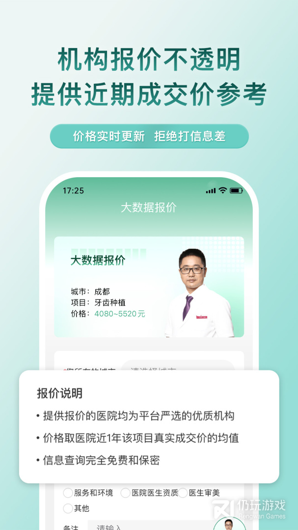 2、软件提供有最有保障的整容方案!帮你找到合您口味整容医师,丰富的整容成功案例!优质的医生,医生资质经过严密的筛选!非常多的热门微整项目