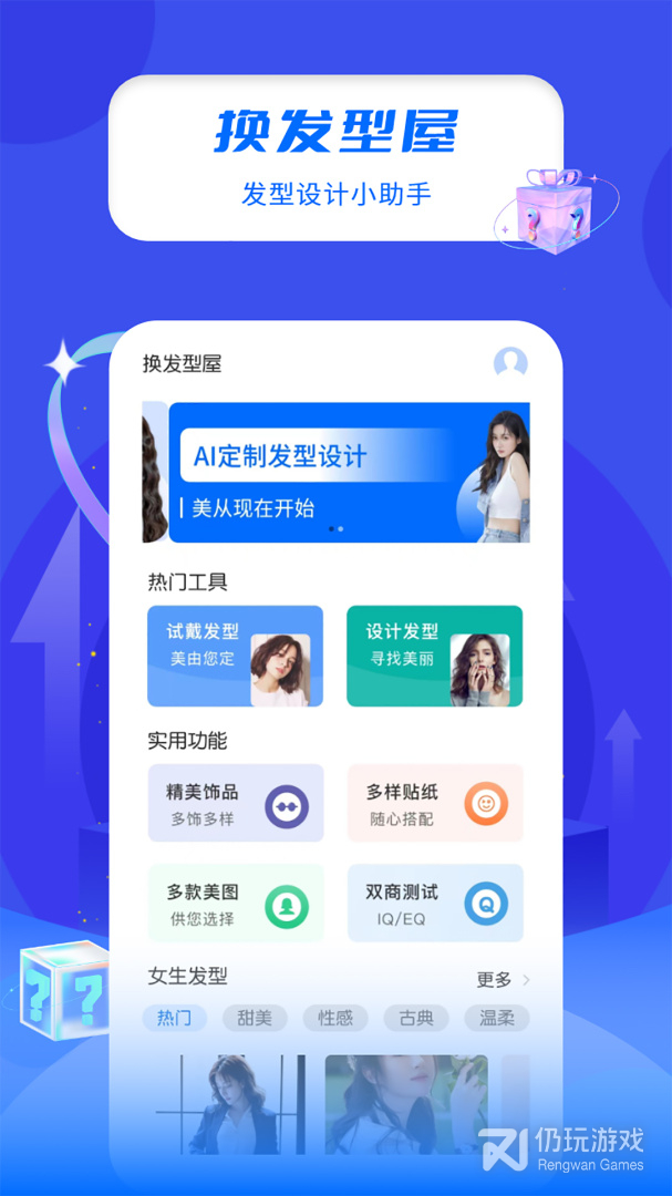 换发型屋最新版是一款专业个人发型设计、假发试戴,帮助用户迅速找到合适发型、心动发色的换发型软件,你贴心的发型管家。这款换发型的发型相机里拥有海量的女士、男士发型可供挑选。无论你是型男还是萌妹,无论你是想剪短发发型、留长发发型、烫发染发还是卷发,都可以通过我们的发型相机轻松做到完美发型设计与脸型搭配。再也不用为如何才能做好发型设计、应该怎么换发型而烦恼啦!