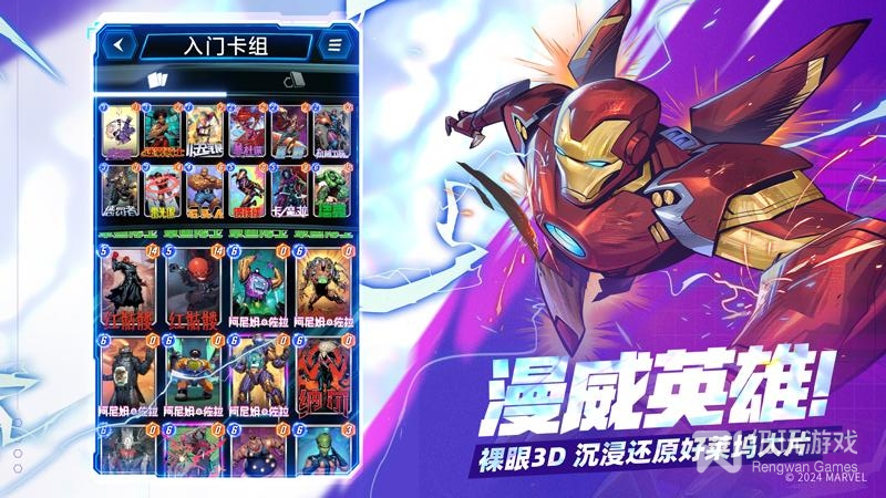 2、丰富的角色选择: 游戏包含大量的经典漫画电影人物,包括钢铁侠,美国队长,蜘蛛侠,灭霸等。每个角色都有独特的技能和属性