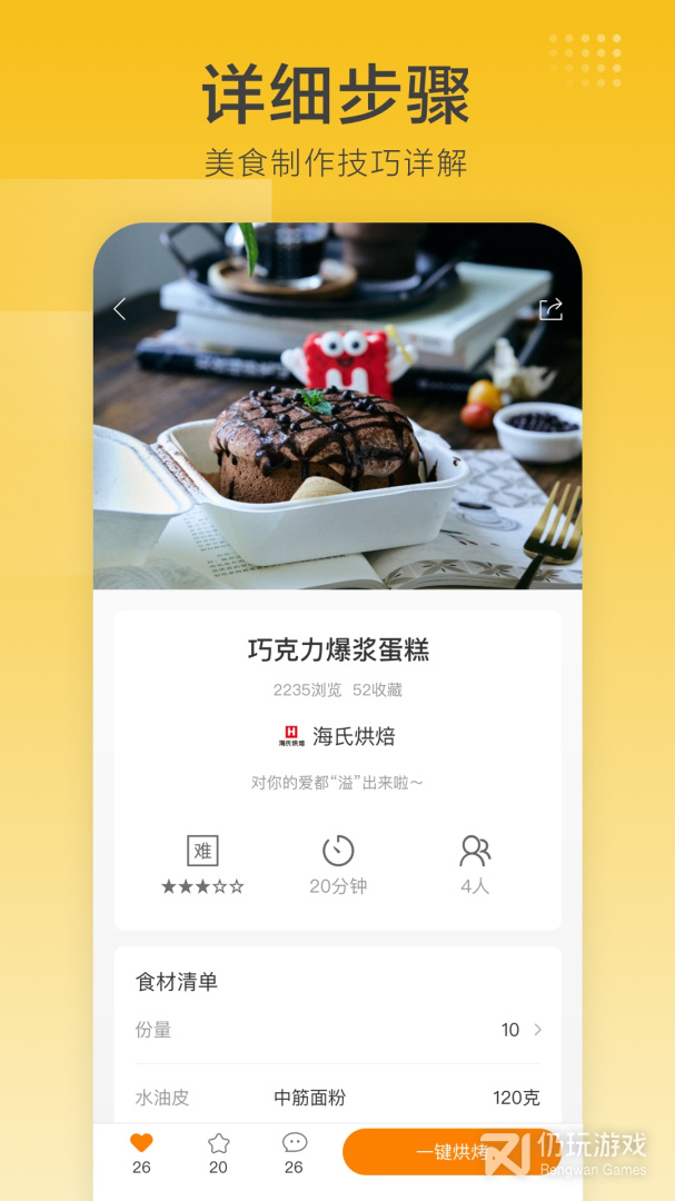 1、它主打的是烘焙,拥有有非常全的蛋糕、甜点等制作方法,帮助用户在家里制作一些烘焙食品,让你迅速从小白变成大师