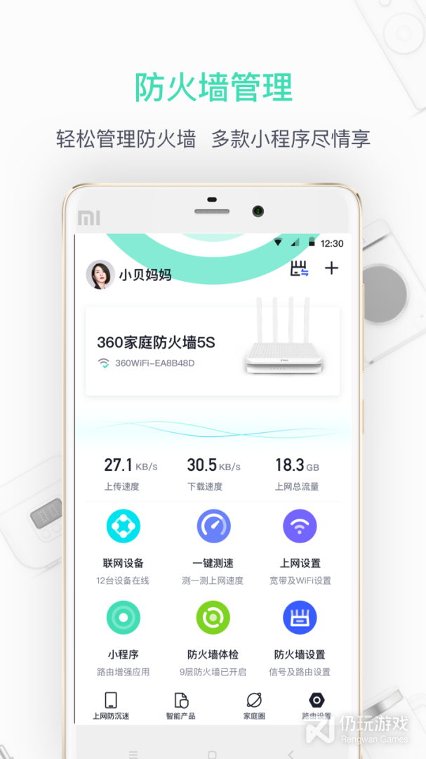 360家庭防火墙(原360智能管家)是一款为家守护的黑科技路由,致力于守护儿童、老人上网安全。具有孩子游戏防沉迷、老人上网防欺诈、智能硬件防入侵、微信查看上网报告等功能,为家人营造绿色健康的上网环境。