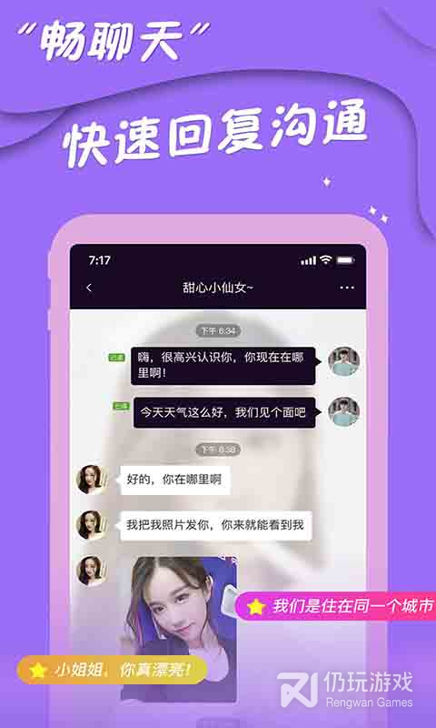 3.和同城好友聊天,用户不仅可以找到同城人,还可以在线聊天。